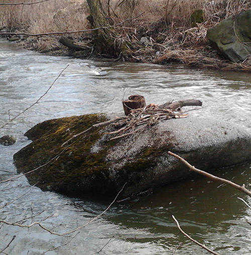 a které řeka jakoby tu nachystala jako pozornost, až přijdou k jarním ohníčkům trempové.