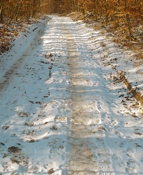 Po dalším kilometru je vše zapomenuto a tu a tam při těch deseti pod nulou křupe tenká vrstva sněhu.