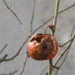 Jen na jedné ještě visí poslední zapomenuté jablko loňské sklizně.