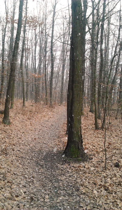 O kilometr později v lese už bylo jasné, že se moc vítat nebude, spíš půjde o loučení se zimou v rozbředlém sněhu.