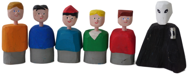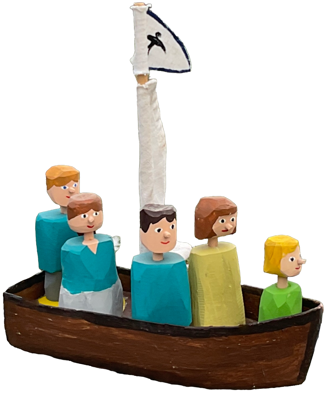 Druhá verze posádky Vlaštovek podle knihy A. Ransoma. Odzadu: John, Zuzana, Roger, Tity a Viki.