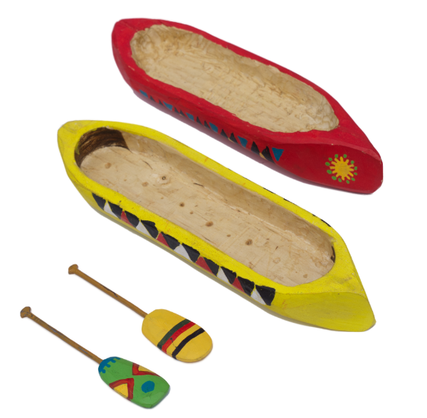 Konečně došlo na indiánské kánoe. Ta červená dala víc práce. Je celá ručně dlabaná.