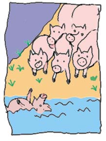Vepřová mše svatá. Z pastýřského listu našich biskupů jsme se dozvěděli, že nás v letošním jubilejním roce čekají neobvyklé věci. Že budou zas až tak neobvyklé, jsme v tuto chvíli ale netušili. Vzpomněli jsme si na to, až když se nám dostal do rukou věstník jedné spřátelené farnosti, kde se v pořadu bohoslužeb na středu v 19 hodin oznamuje Vepřová mše svatá. Jen tak stručně, nic víc. Dost jsme si na tím lámali hlavu. Jednu chvíli se nám i sbíhaly i sliny. Ale nakonec jsme skončili u biblické události, kdy se stádo vepřů posedlé zlými duchy vehnalo bezhlavě do vody a utopilo se. Že by šlo o nějaký nový druh kající pobožnosti? |