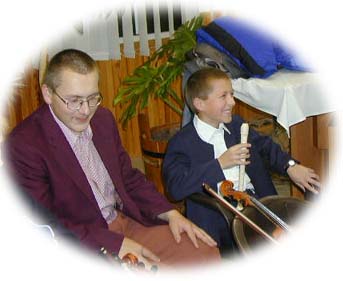 jednoduchou písničku, že za pomoci kytary a několika akordů si společně zazpíváme? Vždyť starý profesor z filmu "Marečku, podejte mi pero" pravil : " … i skladník ve šroubárně si může přečíst Vergilia v originále". Proč by si také nemohl zahrát na housle? ![]() Nejsou to třeba tito?