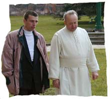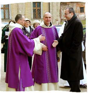 Na obrázku vidíme otce Pavla jak rozmlouvá s premonstrátským novicmistrem,