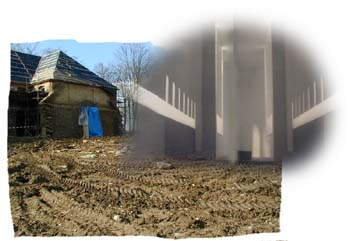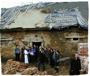 15:30 přes ves, pole a opuštěnou krajinu přijíždíme k budoucímu klášteru.