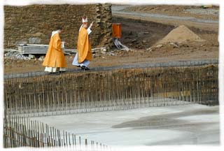 Apoštolský nuncius v doprovodu bratra Maria Jiřího obcházejí základy