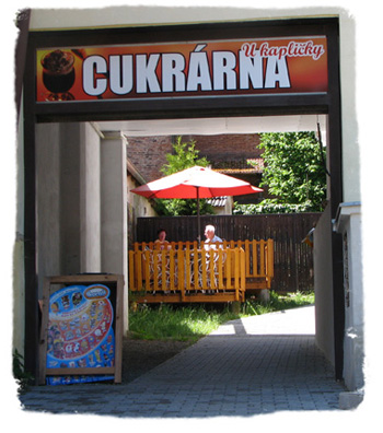 že se kolem čokoládově zbarvených stahovacích dveří cukrárny